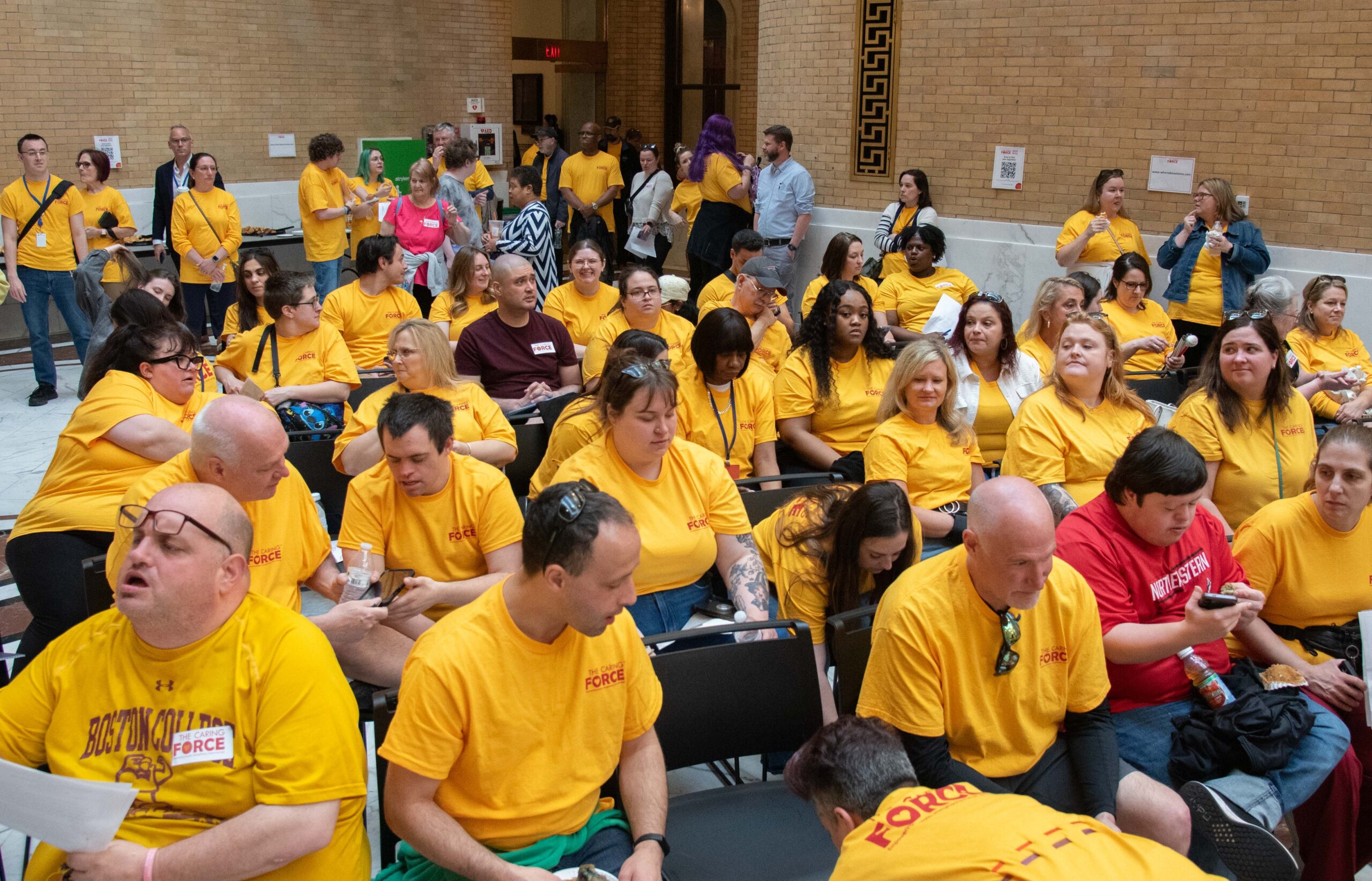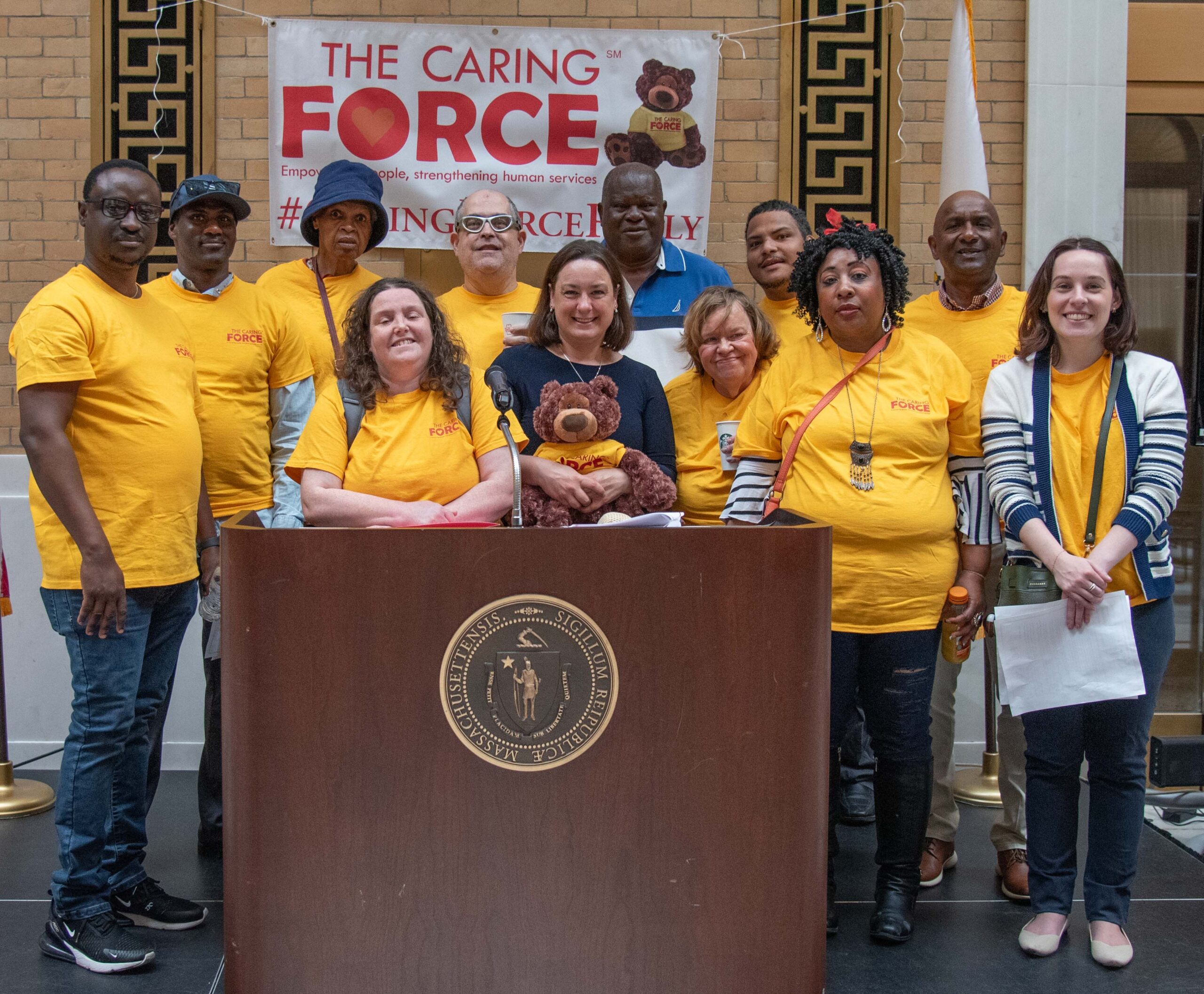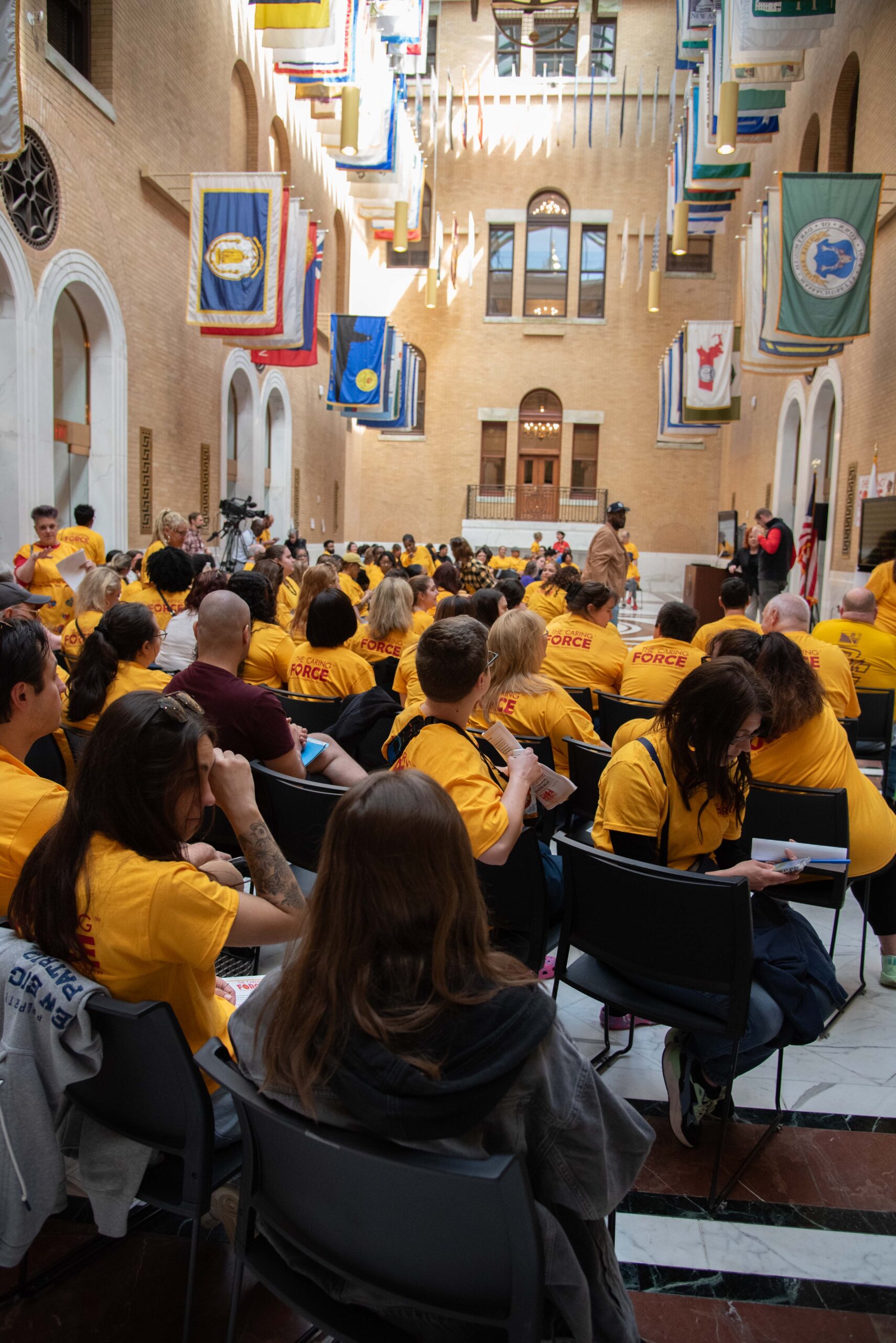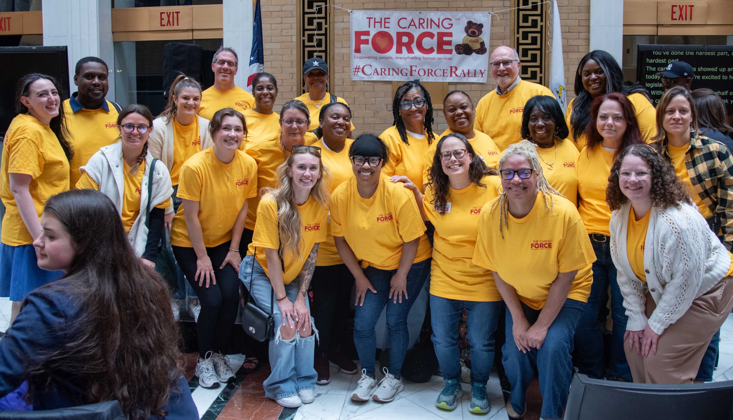 We are so grateful to the nearly 600 Caring Force members who attended the 13th Annual Caring Force Rally and Lobby Day last week to advocate for a livable wage and sustainable student loan repayment program. We filled the building with a sea of gold, shining as brightly as the State House dome!