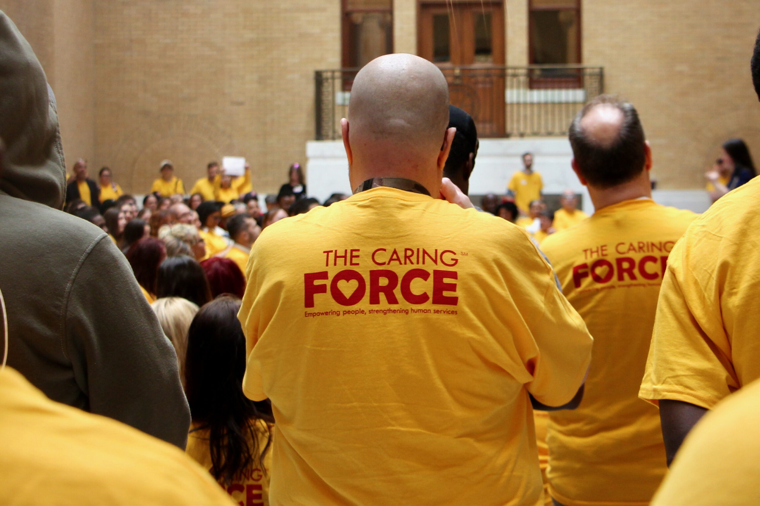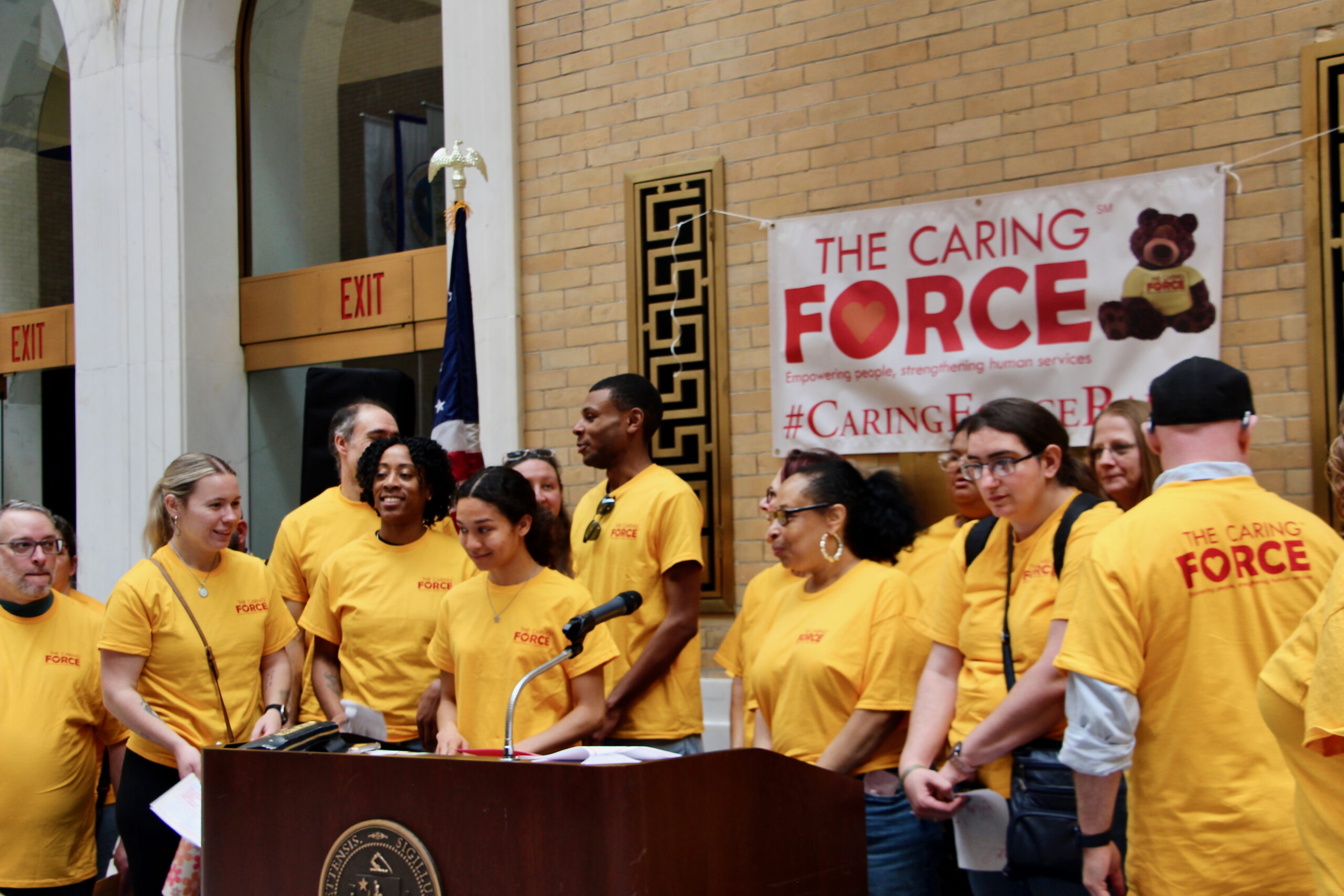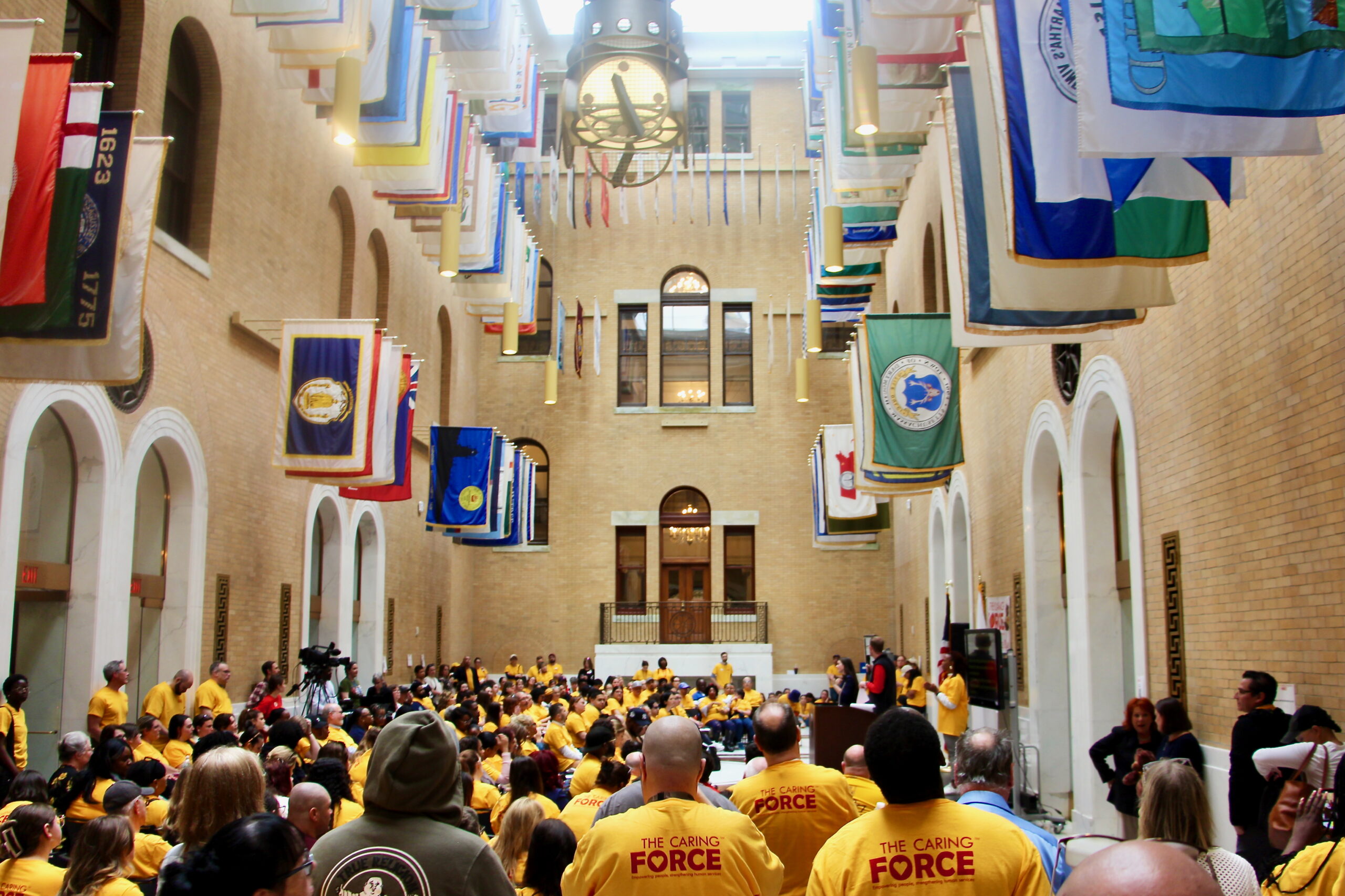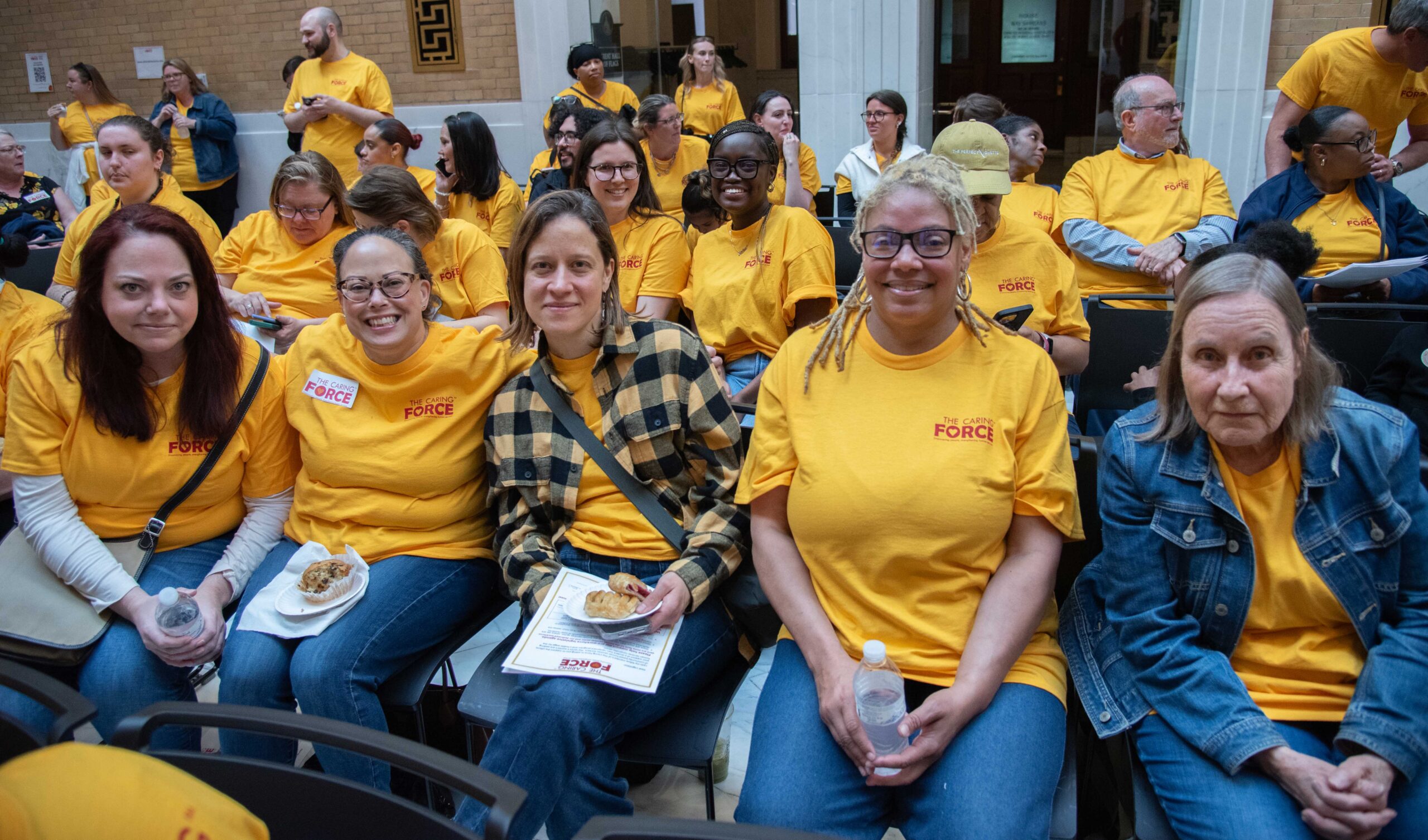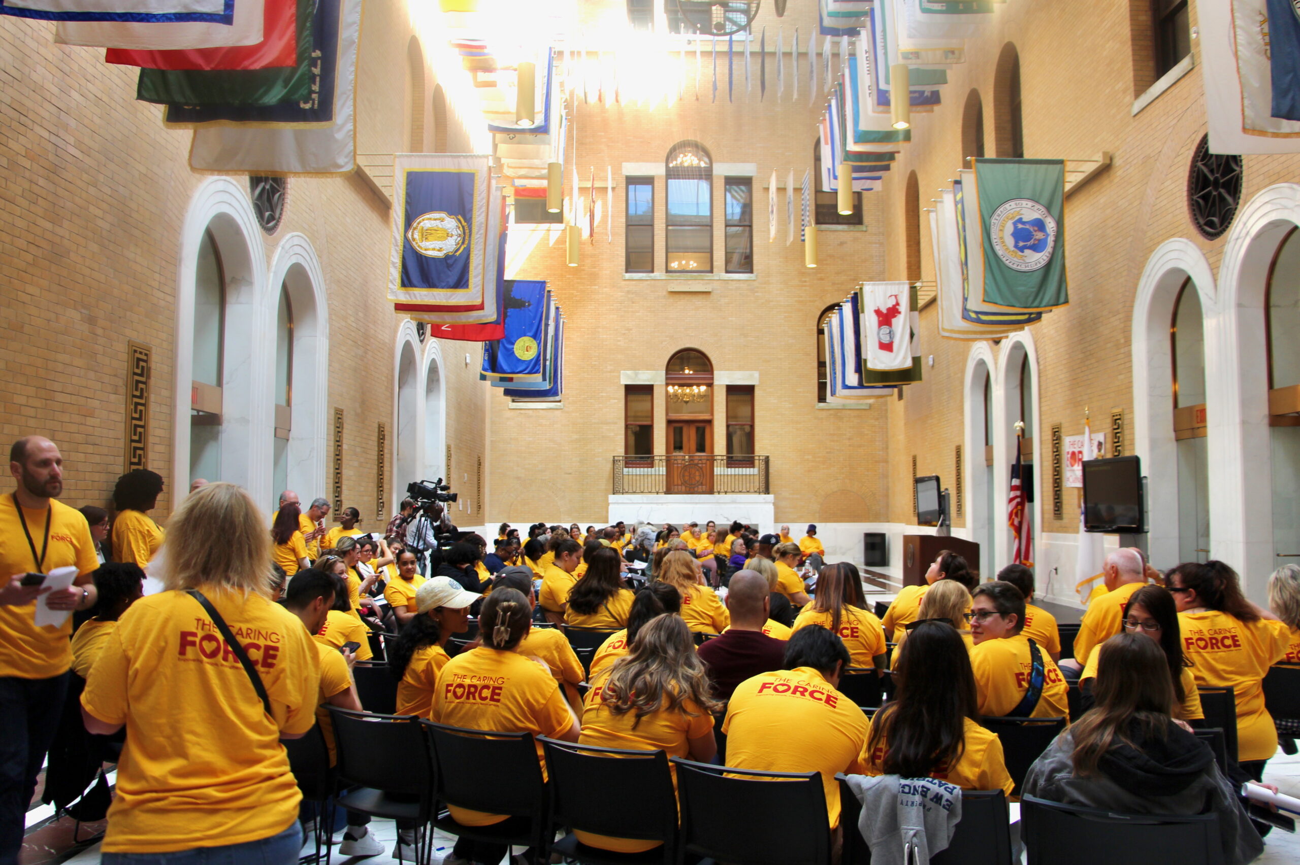 We are so grateful to the nearly 600 Caring Force members who attended the 13th Annual Caring Force Rally and Lobby Day last week to advocate for a livable wage and sustainable student loan repayment program. We filled the building with a sea of gold, shining as brightly as the State House dome!