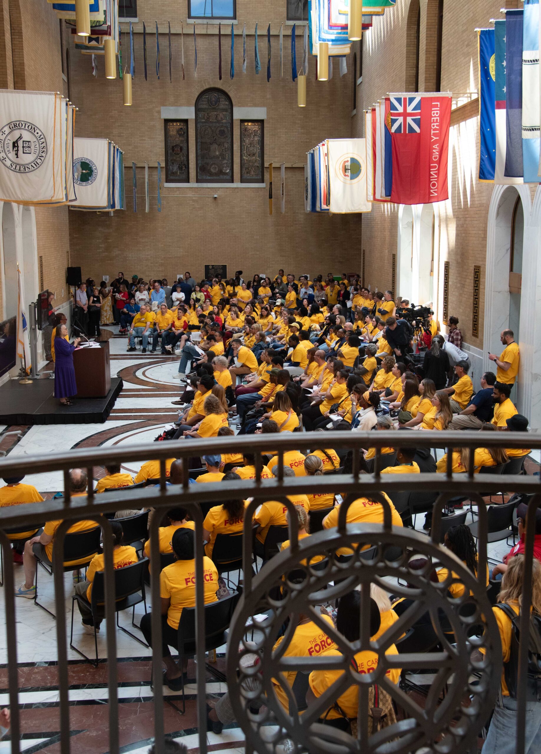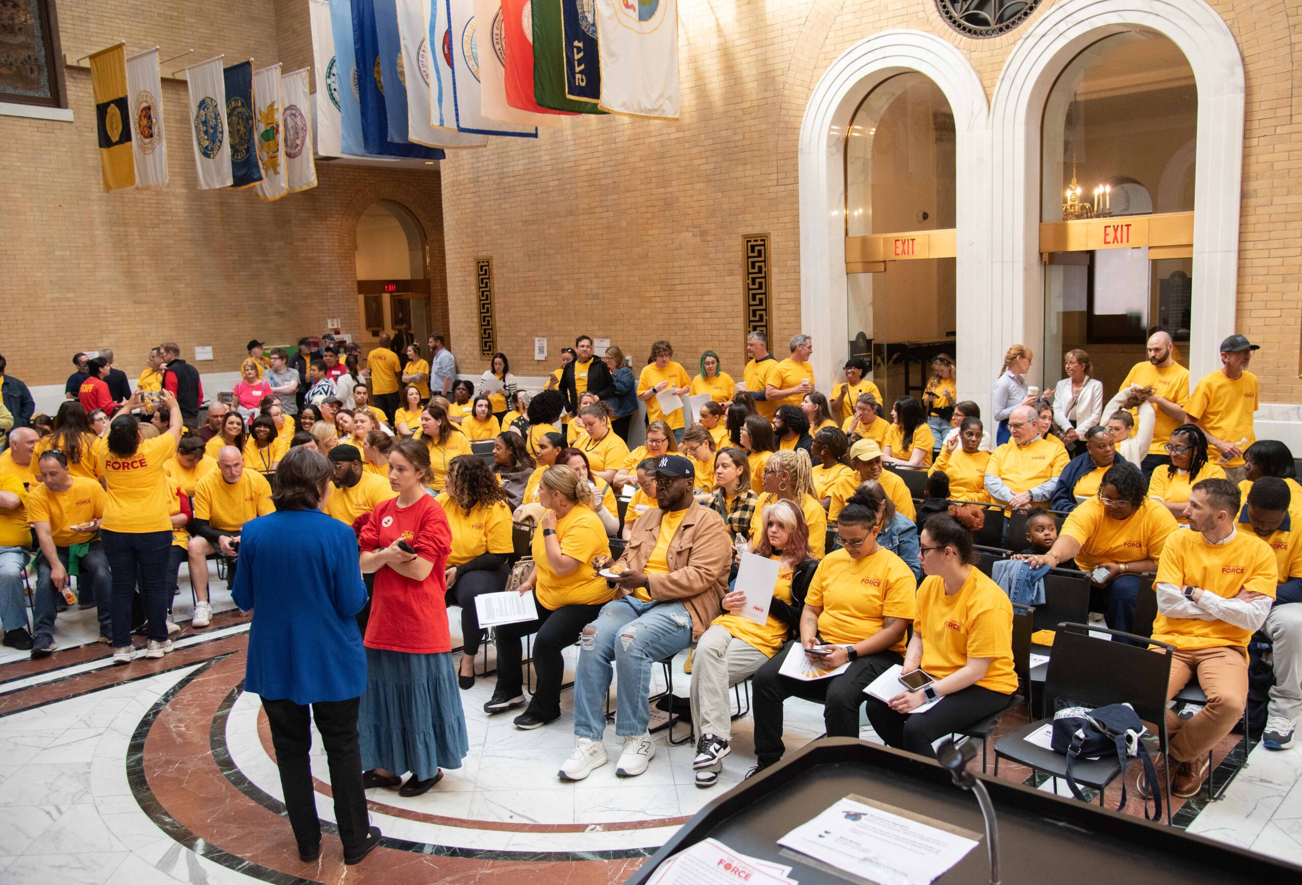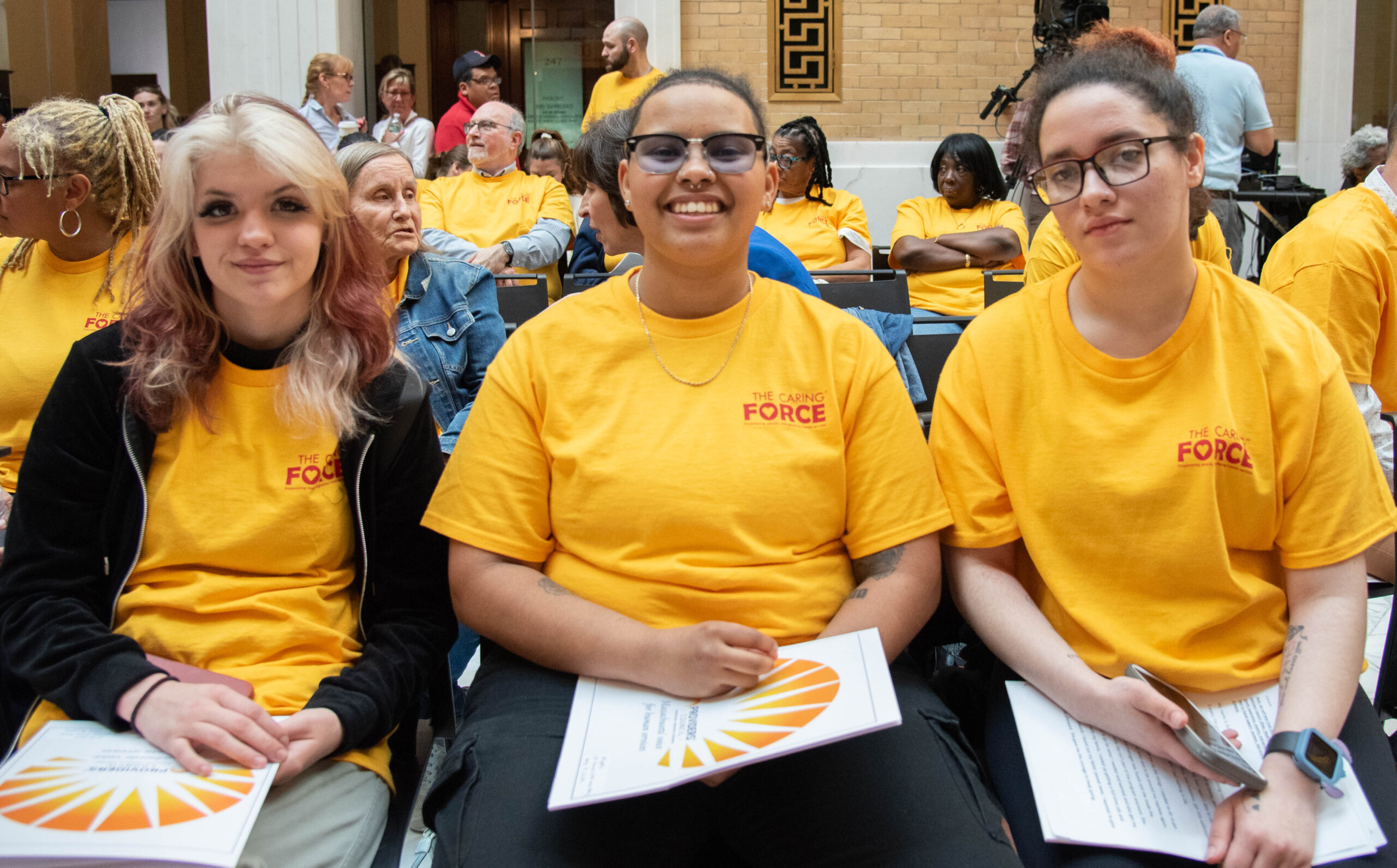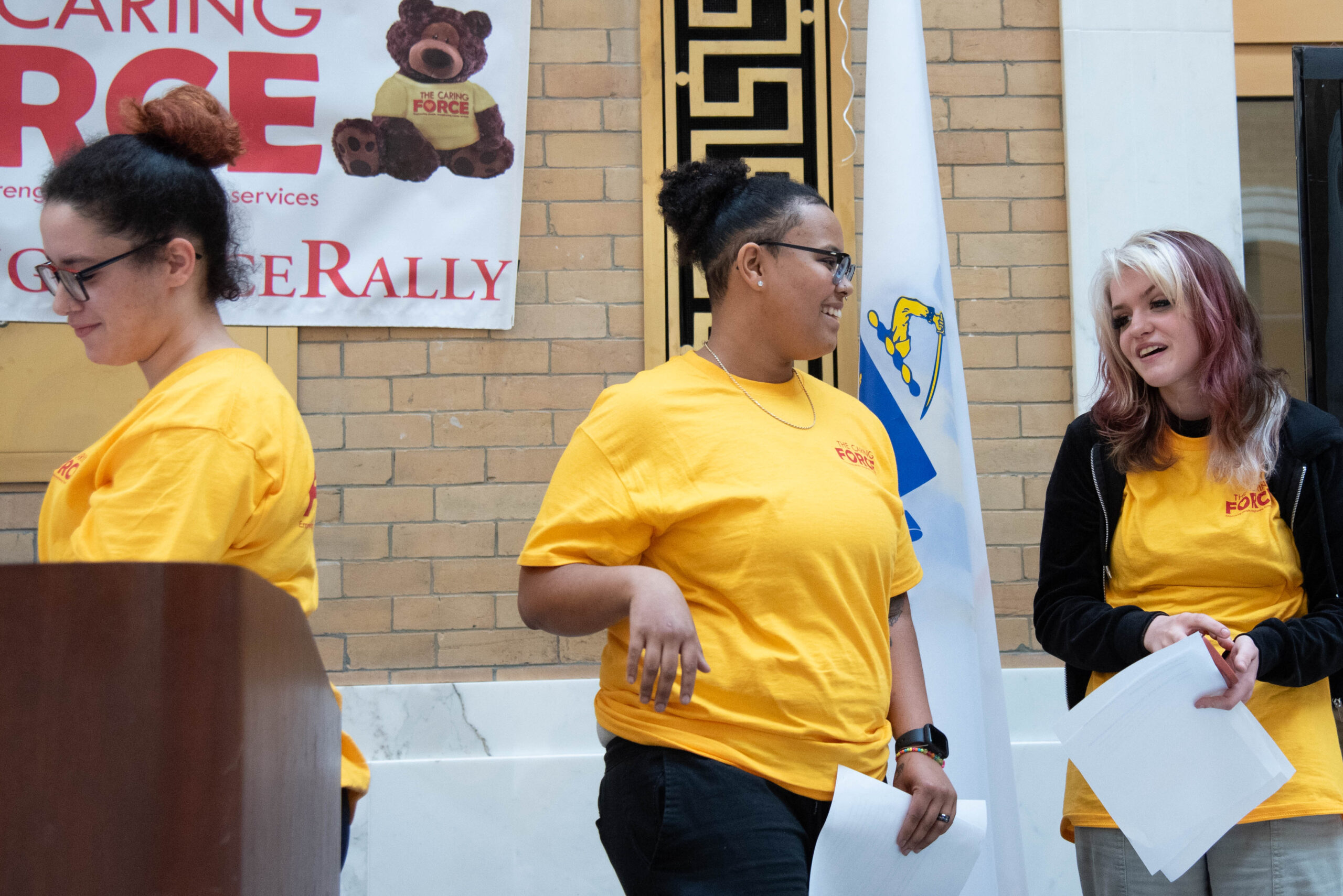 We are so grateful to the nearly 600 Caring Force members who attended the 13th Annual Caring Force Rally and Lobby Day last week to advocate for a livable wage and sustainable student loan repayment program. We filled the building with a sea of gold, shining as brightly as the State House dome!