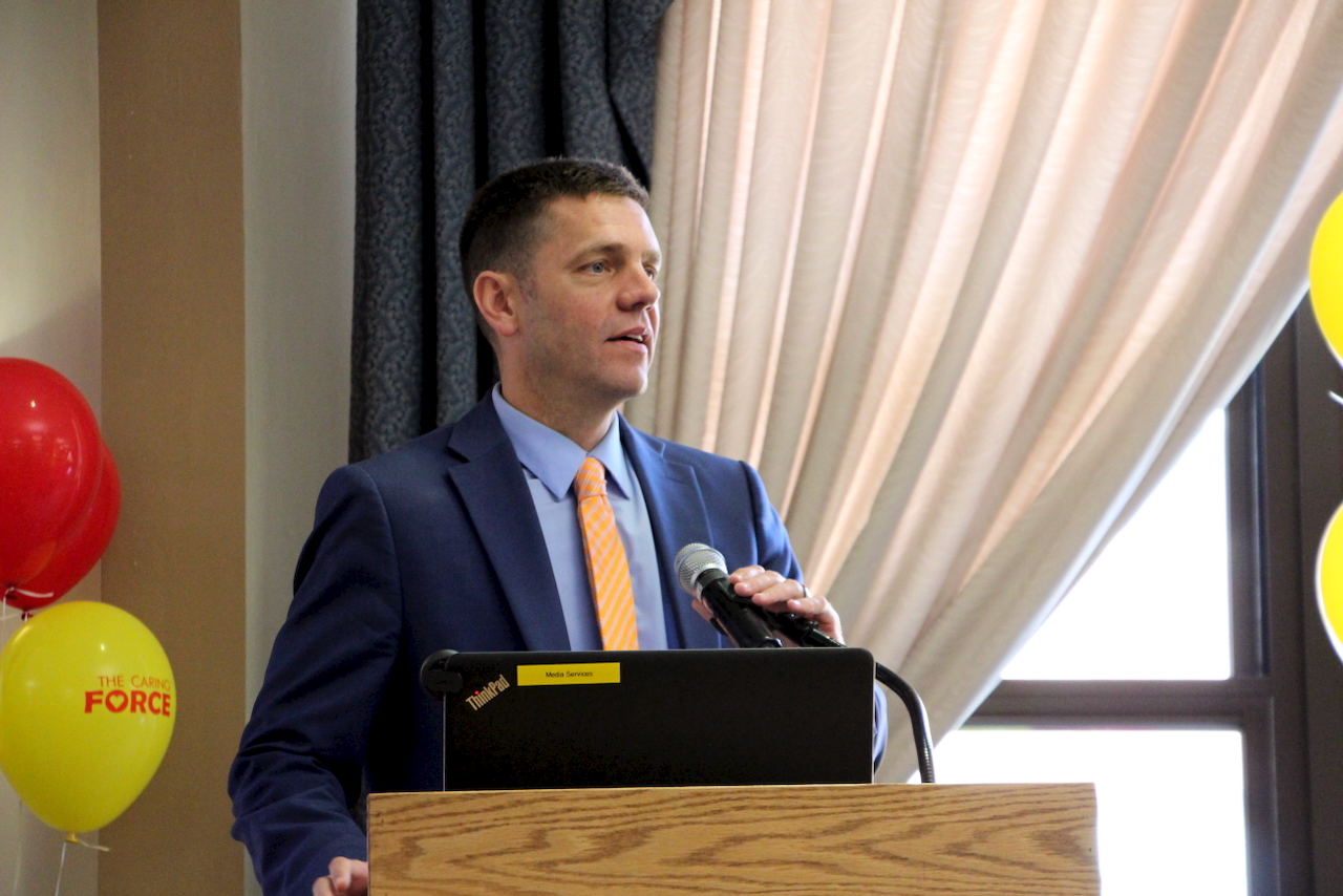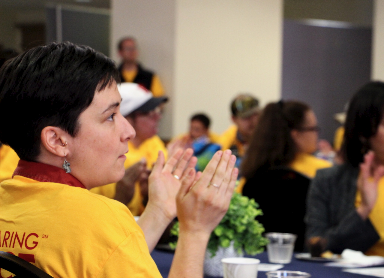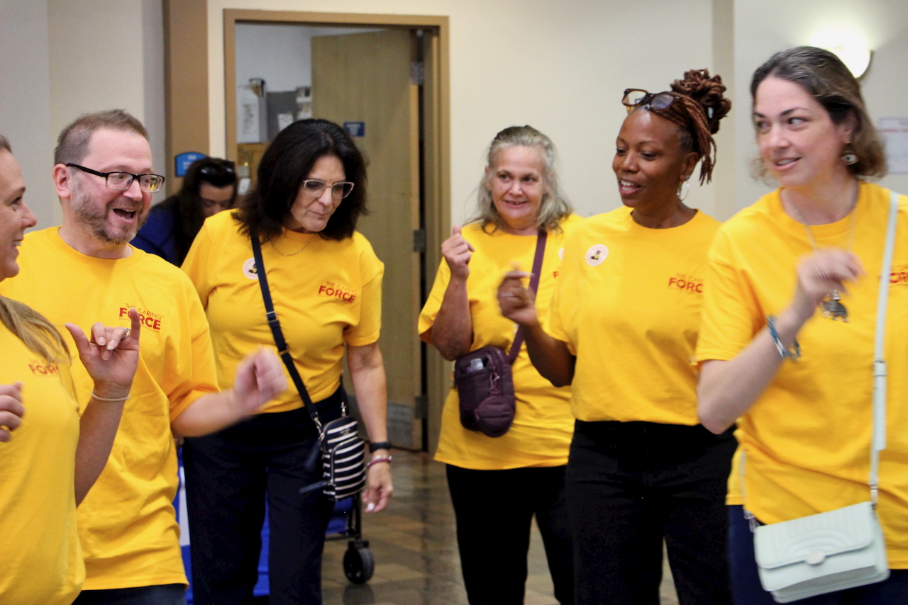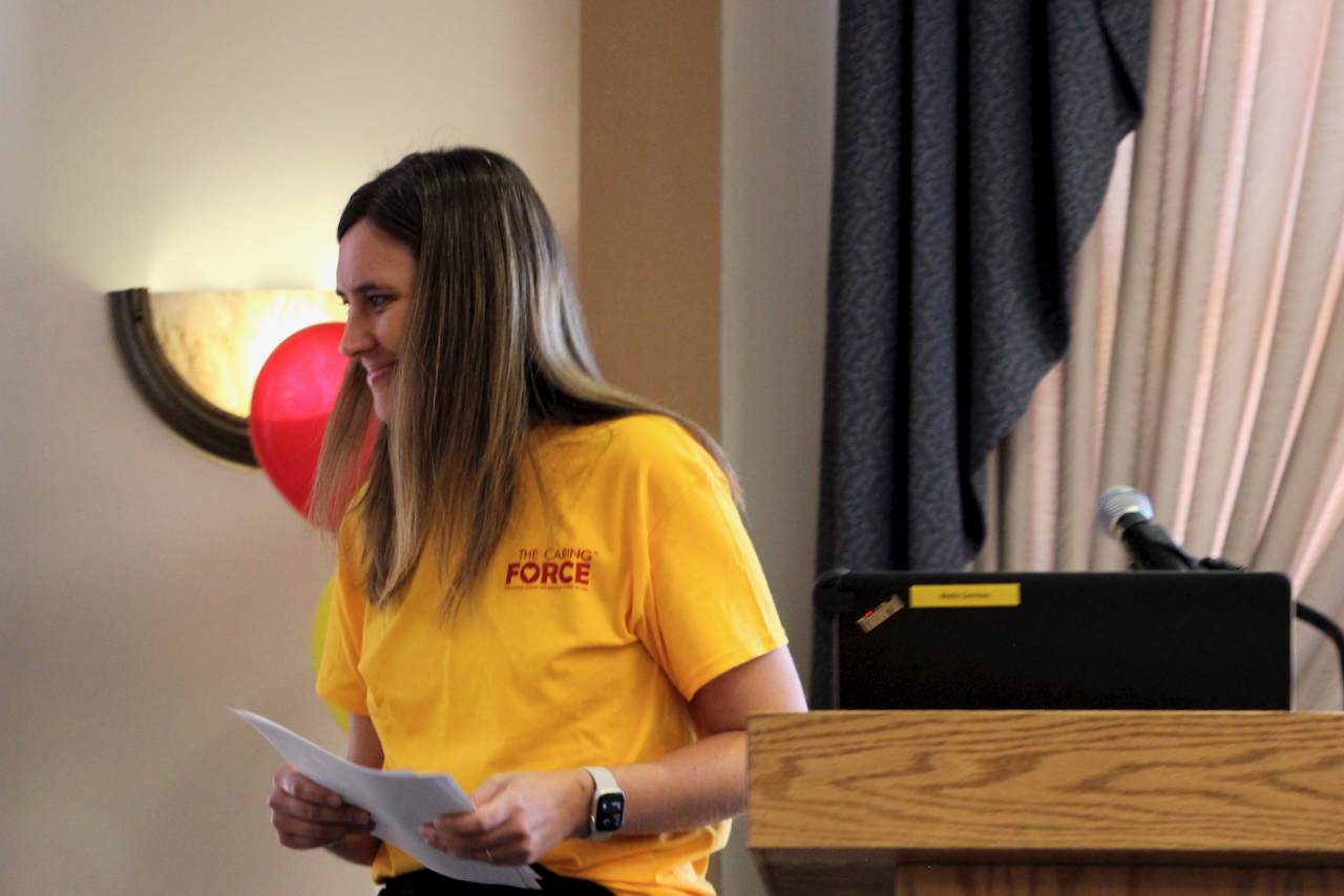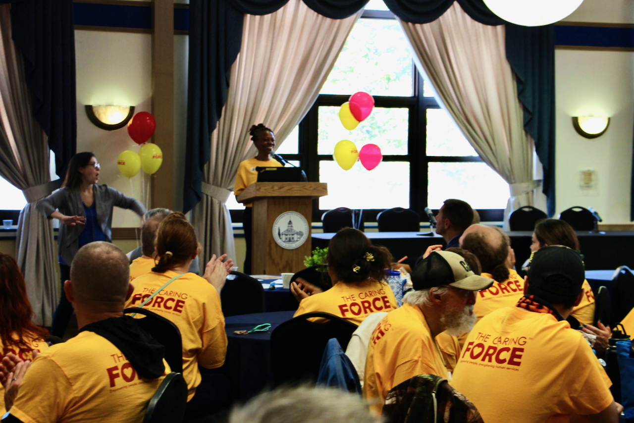 Stephanie Steed, president and CEO of 18 Degrees and chair of The Caring Force, served as MC. “Today marks the final stop in our statewide rally series,” said Steed. “We’ve come together with a clear message: human services workers deserve fair pay, fair funding, and recognition for the essential work they do every day.”