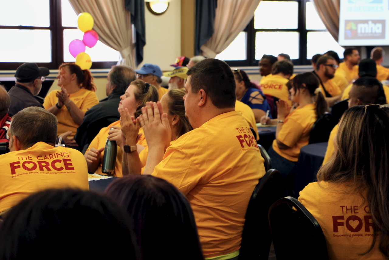 Robert Wild from Viability, both a worker and person-served, shared his mental health journey and financial struggles. “In this field we have many difficulties,” said Wild. “There is legislation to ease student loan burdens and give human service employees a living wage. I support both efforts and hope they become law.”