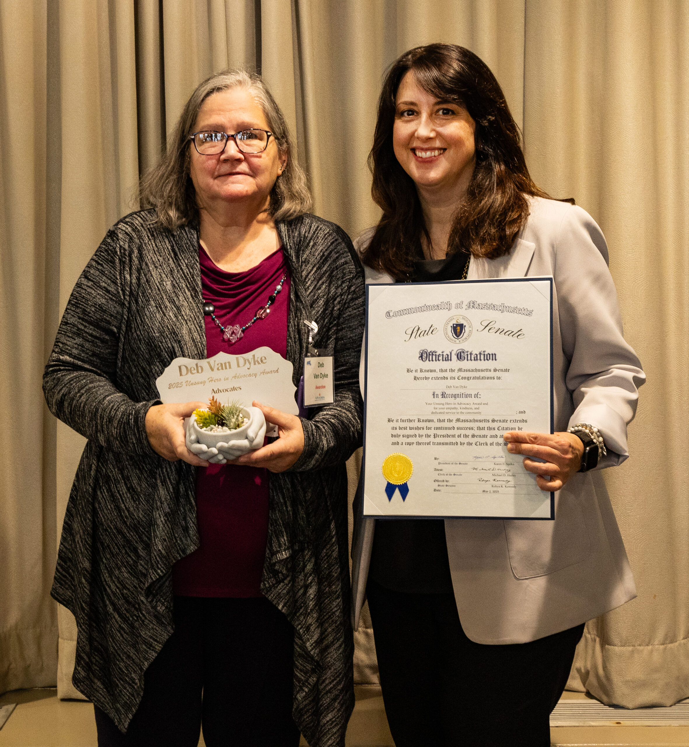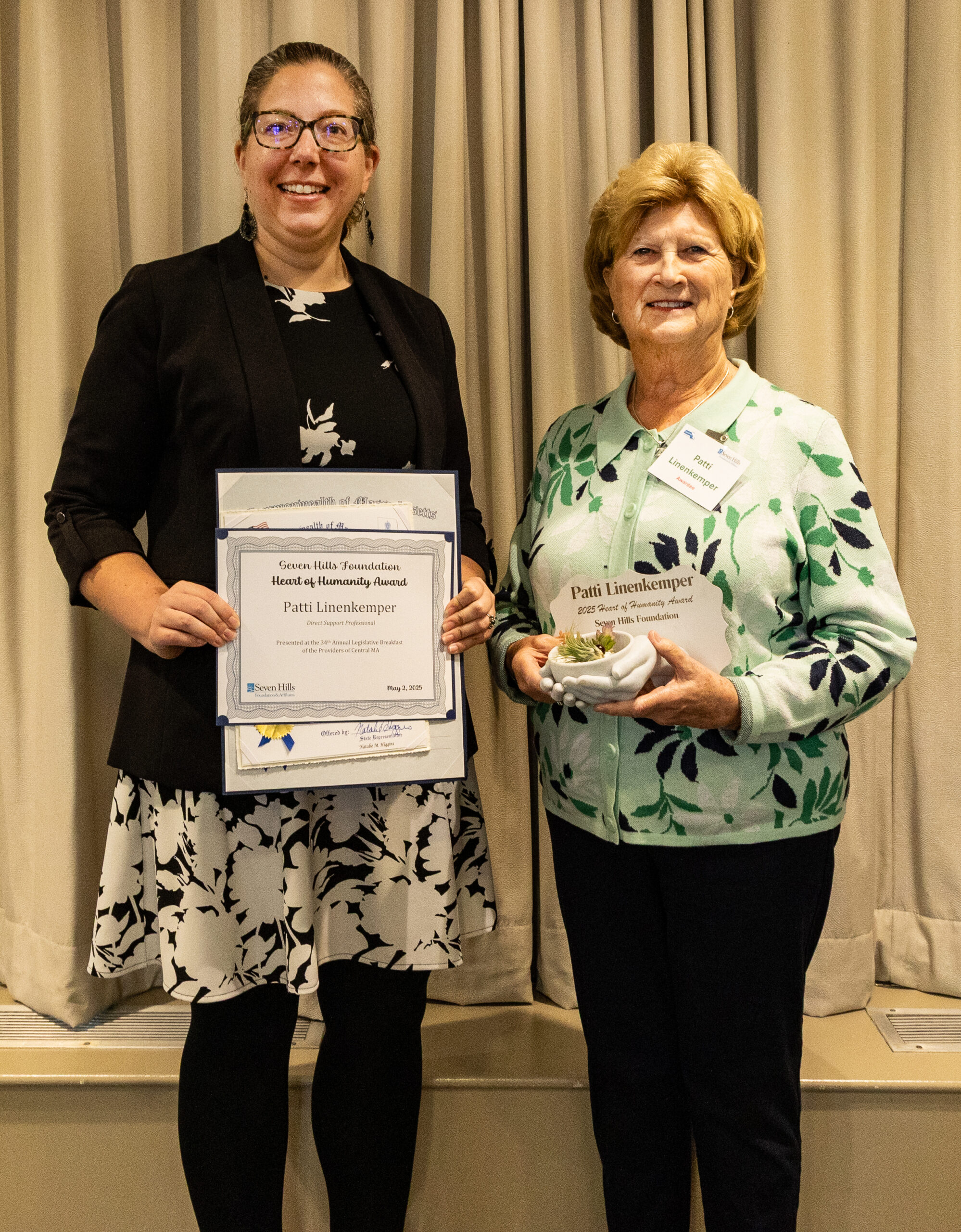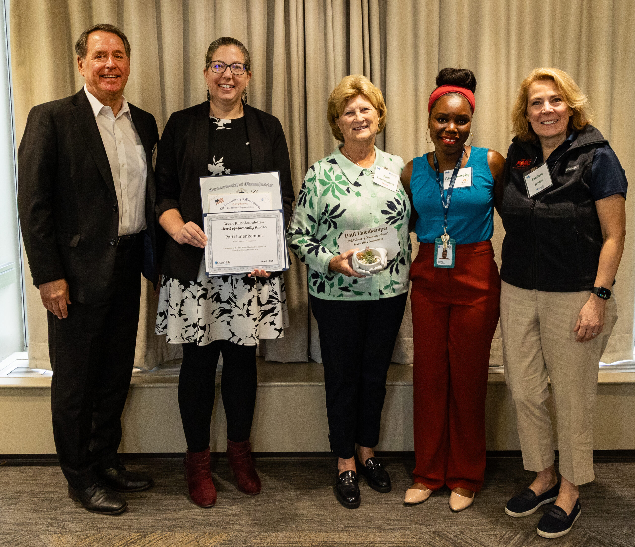 The full list of awardees were: Deb Van Dyke, Senior Program Manager, Advocates Unsung Hero in Advocacy Award; Jake Bartlett, Case Manager, LUK Exceptional Advocate Award; Tony Sumbury, Individual Support Case Manager, Kennedy-Donovan Center Impact for Life Award; Patrick Tucker, Fiscal Contract Manager, Venture Community Services Legacy Award; Patti Linenkemper, Direct Support Professional, Seven Hills Foundation Heart of Humanity Award; Sean Cristofri, Director of Transportation, Pillar of Service Award; Wilson Chama, Individual Support Services, Arc Ripple Effect Award; Shauna Lamoureux, Program Coordinator, Open Sky Compassion in Action Award; Damaris Mercado, Care Manager, Advocates Heart Award; and Susan Kibe, Family Support Coordinator, Thrive Hands of Service Award.