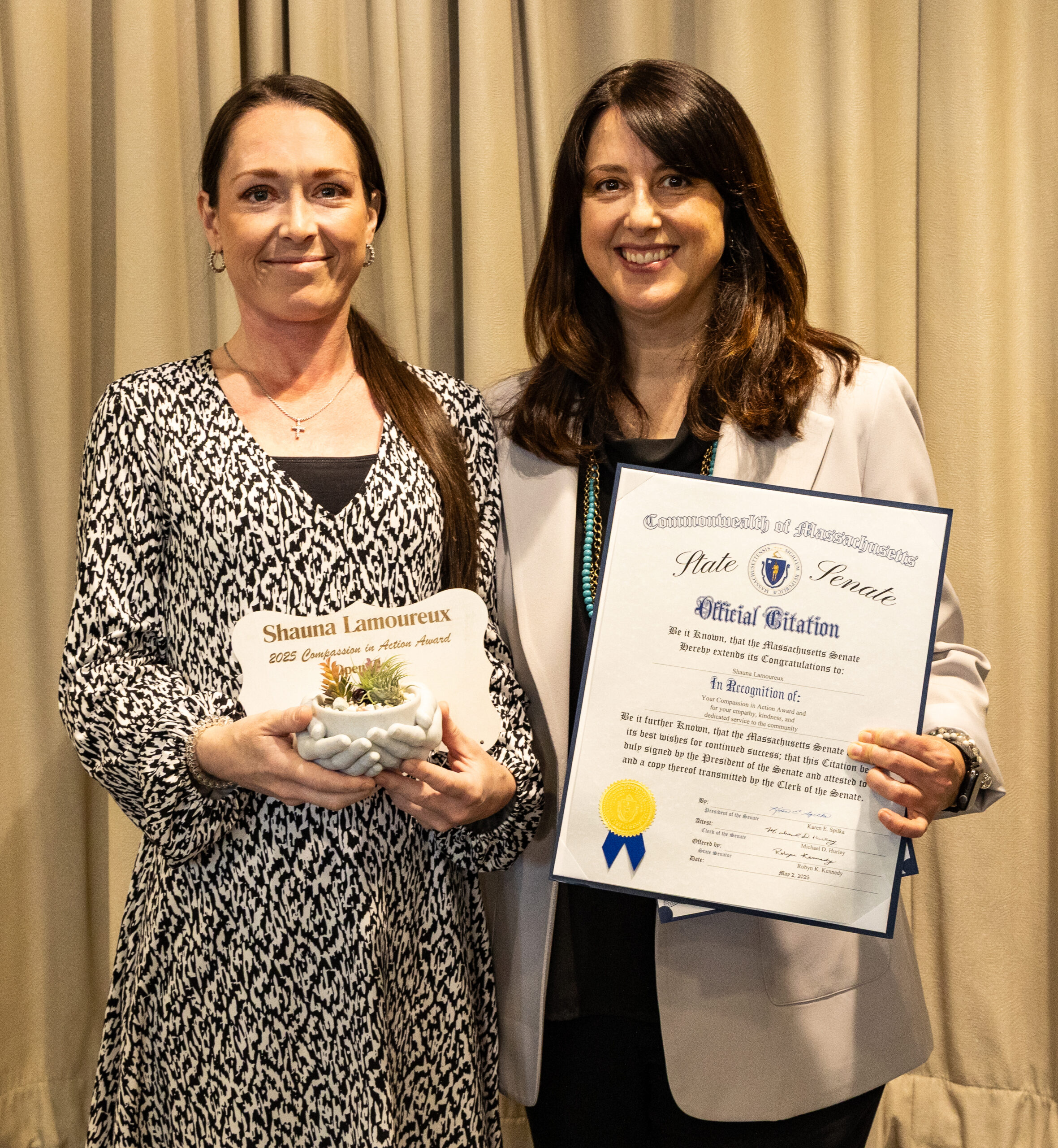 Legislators who supported the award distribution included Rep. Natalie Higgins (4th Worcester), Rep. Michael Kushmerek (3rd Worcester), Rep. David LaBouef (17th Worcester), Rep. John Marsi (6th Worcester) Rep. Joseph Mckenna (18th Worcester), Sen. Peter Durant (Worcester, Hamp, Hampsh, Middlesex), Sen. Ryan Fattman (Worcester & Norfolk), Sen. Robyn Kennedy (1st Worcester), and Sen. Michael Moore (2nd Worcester).
