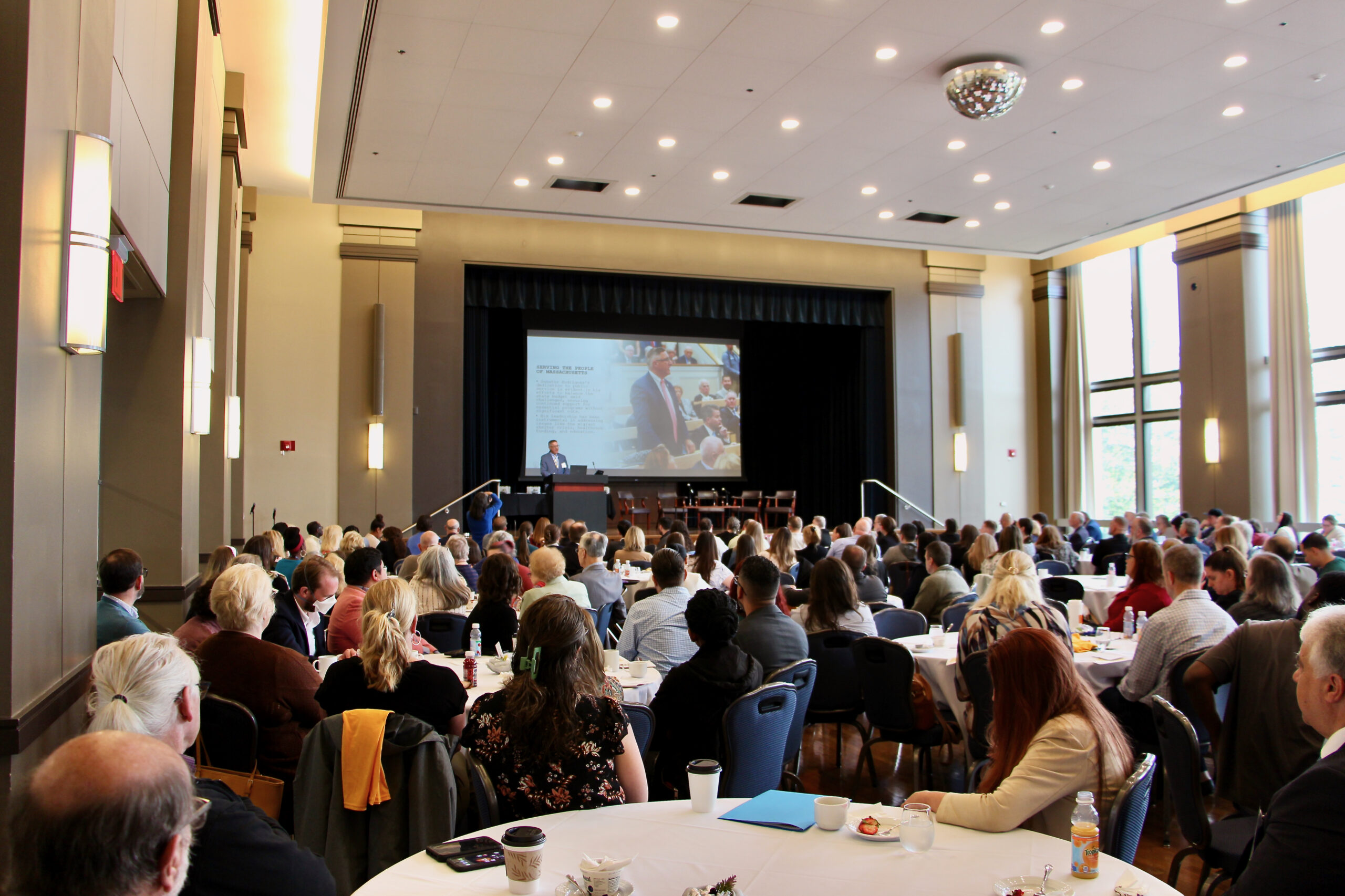 The MetroWest Human Services Advocacy Coalition (MWHSAC) hosted its 21st annual legislative breakfast on Friday, May 9. The event, which was held atNevins Hall in Framingham’s Memorial Building, was convened by local agencies and initiatives including Advocates, Behavioral Health Partners of MetroWest, Jewish Family Service of Metrowest, Justice Resource Institute, South Middlesex Opportunity Council, The Caring Force, and Wayside Youth & Family Support Network. Approximately 200 guests attended this year’s event, which celebrated two decades of partnership and legislative milestones with a theme of “Strong and Resilient: Together for the Community.”