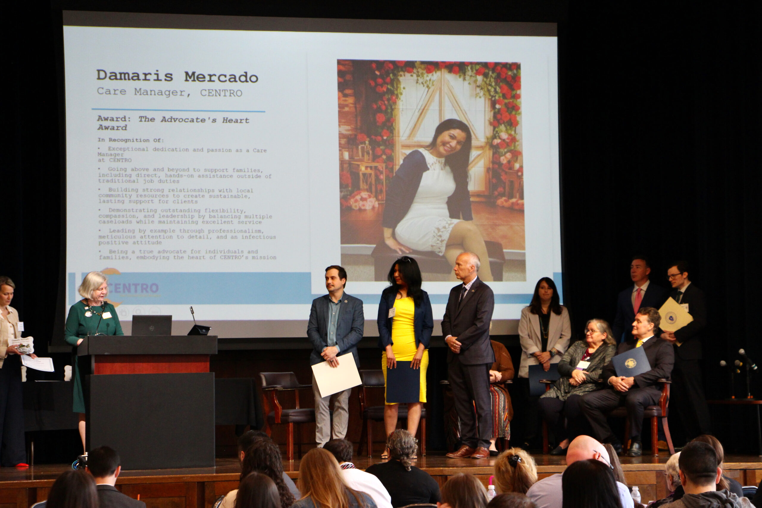 The day’s third award was presented to the Advocates Community Behavioral Health Center’s (CBHC) Framingham Outpatient Team. Team members were praised for going far beyond their required tasks, such as finding a therapist who can go to a school or an afterschool program for a child who needs to build their communication skills, make friends and strengthen their confidence and coping skills.