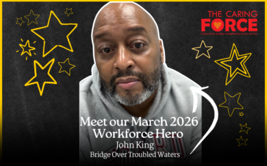 John King is our Caring Force March 2026 Workforce Hero Spotlight honoree! King began as Manager of the Transitional Day Program and now serves as Associate Director of the Welcome Center and Emergency Residence at Bridge Over Troubled Waters.