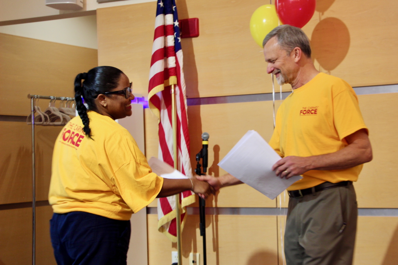 Two human services professionals from the Merrimack Valley, Joshua Nye from Vinfen and Darleni Vlaun from Advocates, shared their work experiences, and encouraged legislators to pass both bills on the Caring Force’s legislative agenda: An act relative to a loan repayment program for human service workers and An act relative to a livable wage for human services workers.