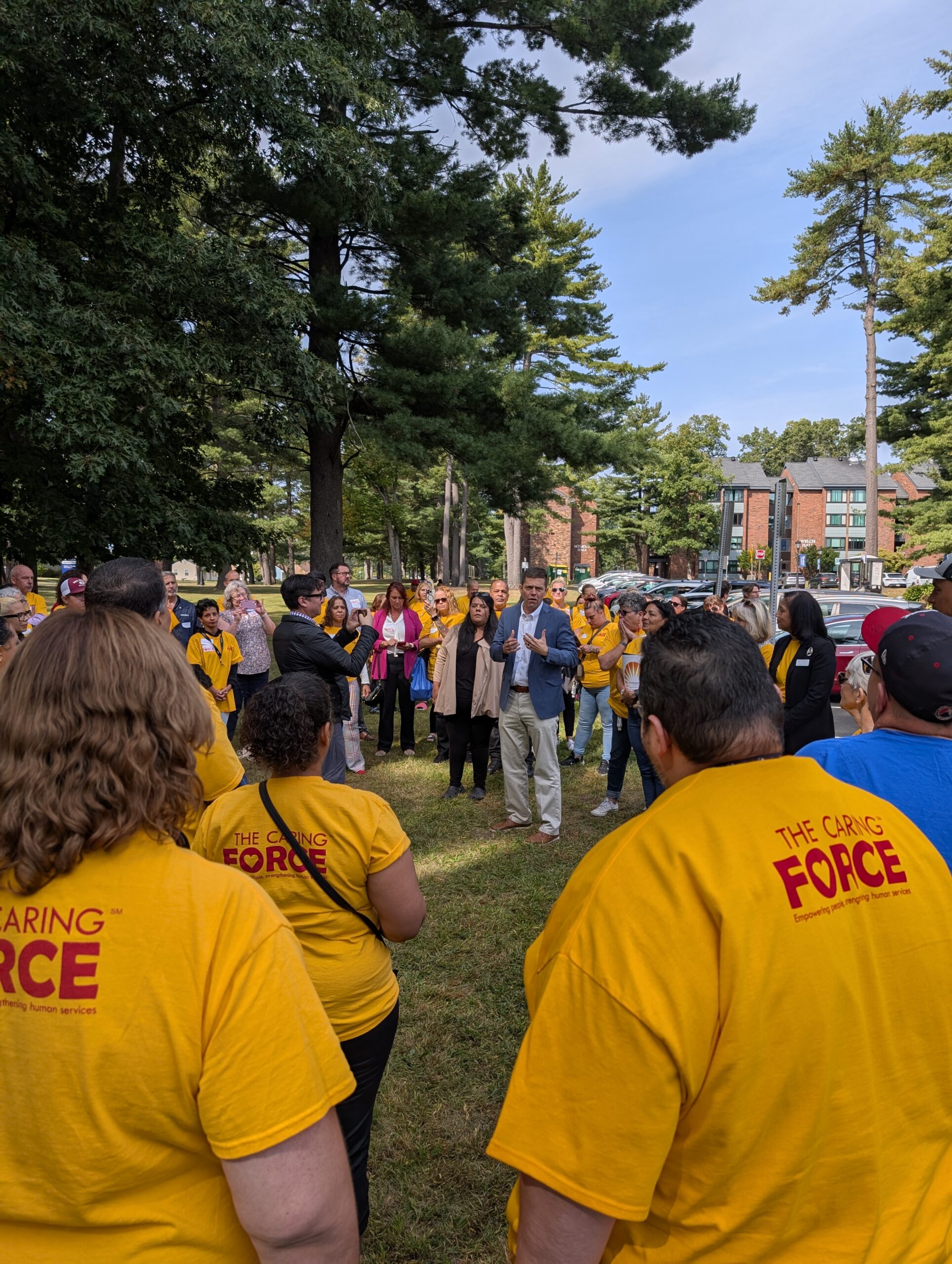 State Representative Carlos González (Hampden) and State Senator John Velis (Hampden and Hampshire) delivered powerful messages of support for the sector, pledging to continue the fight for better wages and resources.